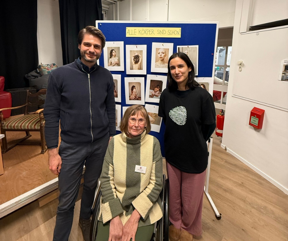 Anlässlich des Internationalen Tags der Menschen mit Behinderung lud der Inklusionsbeirat Hamburg-Nord zur Veranstaltung „Schöne Körper, schiefe Blicke“ in die Begegnungsstätte Eppe & Flut ein. Neben vielen anderen Interessierten waren auch unsere Bezirksabgeordneten Nergis Zarifi und Marcel Bulawa dabei. Die Teilnehmenden diskutierten gesellschaftliche Schönheitsnormen, die Ausgrenzung oft unbewusst mitdenken. Texte von Aktivistinnen zeigten Diskriminierungserfahrungen auf. Eine Fotoausstellung erweiterte den Blick auf vielfältige Körper. Im offenen Austausch entstanden Ideen für eine bessere Zusammenarbeit mit dem Inklusionsbeirat und neue politische Initiativen. (Auf dem Foto: Marcel Bulawa, Heike Wandke vom Inklusionsbeirat und Nergis Zarifi (v.l.n.r.)