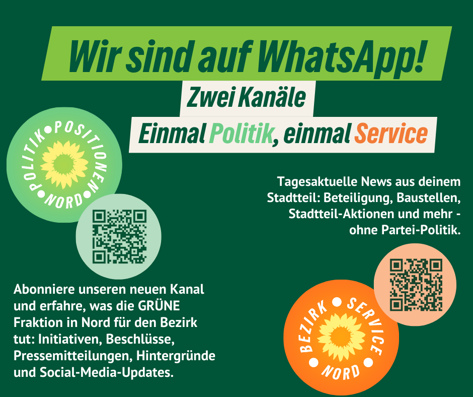 P.S: Wer künftig schneller über unsere Politik für den Bezirk Nord informiert werden möchte, abonniert neben unserem Kanal für Stadtteilinfos einfach auch den neuen WhatsApp-Kanal mit Politk &Positionen aus Hamburg-Nord. Alle Infos hier.